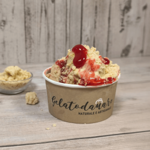 - DOMENICA INSIEMEGelato alla crema pasticciera con salsa ai frutti di bosco con crumble al biscotto